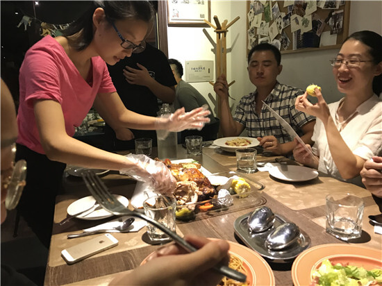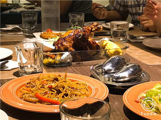這次聚餐我們選在了義烏田畈西式簡(jiǎn)餐,感受了網(wǎng)紅美食的魅力。提前預(yù)定的田畈秘汁烤全雞果然沒(méi)讓我們一行人失望,肉質(zhì)鮮嫩,手撕過(guò)癮,多吃不膩,但貌似廚師大神今天用力過(guò)猛抖了太多鹽,不過(guò)口感還是極佳的。黑椒牛柳意面、芝士蓋飯、香酥鱈魚(yú)、焗大蝦、凱撒沙拉、鮮嫩牛排還有美味的披薩都很驚艷。好在這次留了胃給飯后甜點(diǎn)堅(jiān)果布朗尼,濃郁的巧克力加上脆口的堅(jiān)果,層次分明口感特別棒,飯后嘗一塊真是享受。