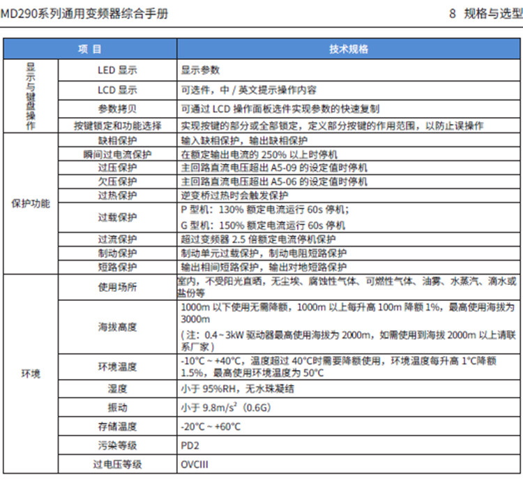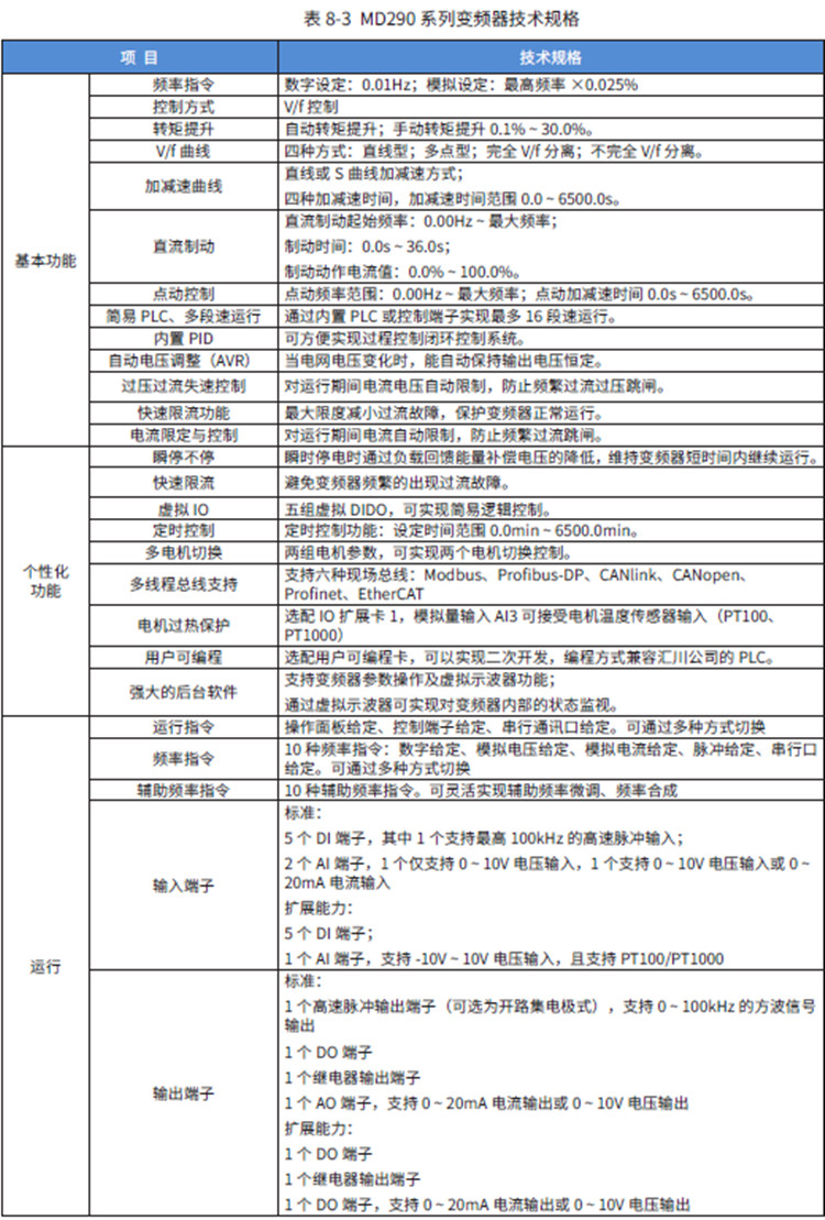 MD290 系列變頻器是一款通用型變頻器,可以輕松驅動和控制異步電機,具備用戶可編程功能及后臺軟件監控、通訊總線功能,體積小,功能強大,性能穩定,滿足國際主流標準和認證。可應用于紡織、造紙、拉絲、機床、包裝、食品、風機、水泵等行業及各種自動化生產設備的驅動。